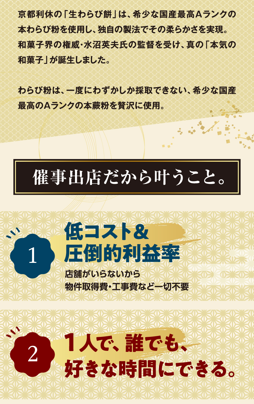 ストラク株式会社/京都利休の生わらび餅のココに注目!フランチャイズ