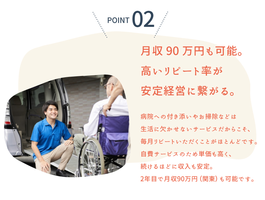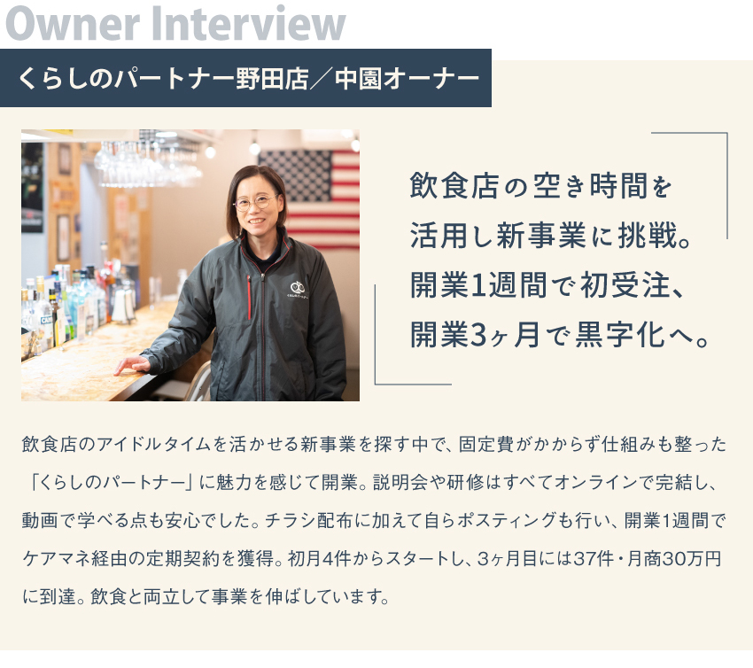 独立開業・フランチャイズ・代理店ならアントレ<毎週金曜更新!> 02/13更新全283件 [新着1件] ヘルプ 広告掲載をご希望の方 ログイン 会員登録無料 メッセージ お知らせ 気になる 閲覧履歴 独立情報を探す gnavi_list.htm 副業 ランキング 女性の独立 起業スクール コラム 業種から探す エリアから探す 契約タイプから探す 飲食デリバリー IT関連スマホ 修理クリーニング 小売コンビニ 塾スクール 美容サロンボディメイク 介護医療福祉 買取リサイクル 各種サービス 北海道 東北 関東 北信越 東海 関西 中国 四国 九州・沖縄 海外 フランチャイズ 代理店 業務委託 商材&事業支援 社員to独立 common_top.htm 独立、開業、フランチャイズTOP フランチャイズ 各種サービス 生活関連サービス 株式会社クラピスの独立・開業情報 株式会社クラピスのココに注目! closeup_top.htm 株式会社クラピスのココに注目!フランチャイズ 株式会社クラピス 「くらしのパートナー」高齢者の日常のお困り事を解決/資格・経験不要! 資料ダウンロード 説明会日程を見る closeup_main_top.htm 開業プラン 説明会日程 ココに注目! 企業概要 オーナーレポート 気になる 説明会日程を見る 資料ダウンロード 開業プラン 説明会日程 ココに注目! 企業概要 オーナーレポート closeup_main_bottom.htm closeup_bottom.htm common_bottom.htm common_footer_middle.htm common_footer_bottom.htm