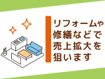 すでに内装工事業などを営まれている法人様の事業拡大にもおすすめです。内装工事に直結する集客方法として当ビジネスを有効にご活用いただけます。