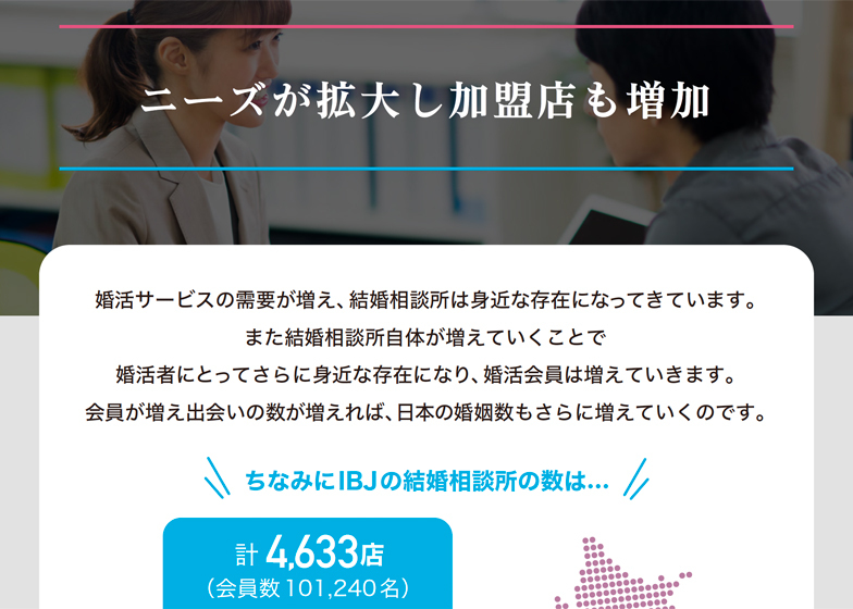 - 独自の婚活システムや月30件以上の研修等、多くの加盟店にIBJが選ばれる理由を公開!