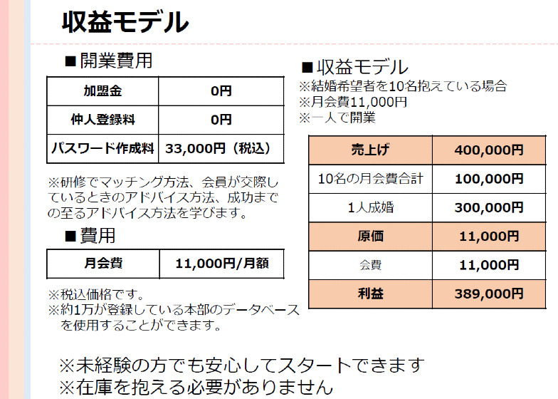 株式会社日本仲人協会の商材&事業支援開業プラン商材&事業支援