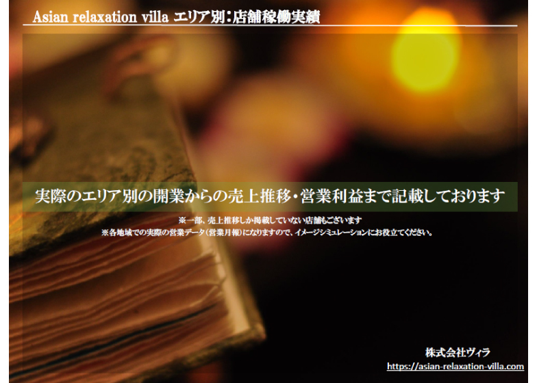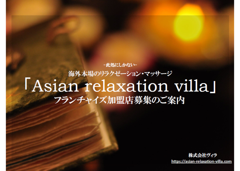- Asian relaxation villaの施術メニュー・店舗構成など、具体的な開業イメージを掲載!