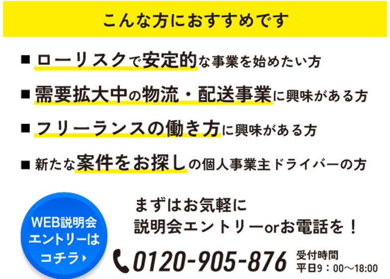 【WEB説明会】加盟金・保証金0円、企業専属便で約5000名のドライバーが活躍中です!