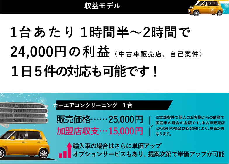 【加盟金120万円→0円】唯一無二のカーエアコン洗浄特許技術(自社調べ)。競合が入れない稀有なブルーオーシャン市場。大手中古車店がこぞって採用する高い技術を習得して安定収益を。加盟者急増中。