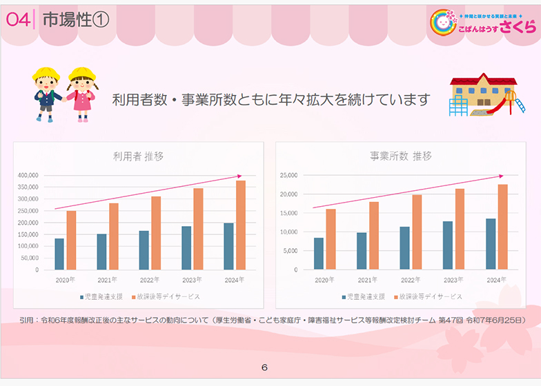 ★約264万人とも言われる症状が比較的軽い児童がメインです。まだ施設の数は足りず、更なる拡大が見込める事業です!
