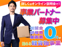 ★加盟金、登録料、講習費、ロイヤリティ0円!★車両を購入する場合、本部が半額負担!★再配達なし、重いモノなし!高単価の企業便がメイン!★9割が未経験スタート!40~70代多数活躍!★創業36年の安定企業!