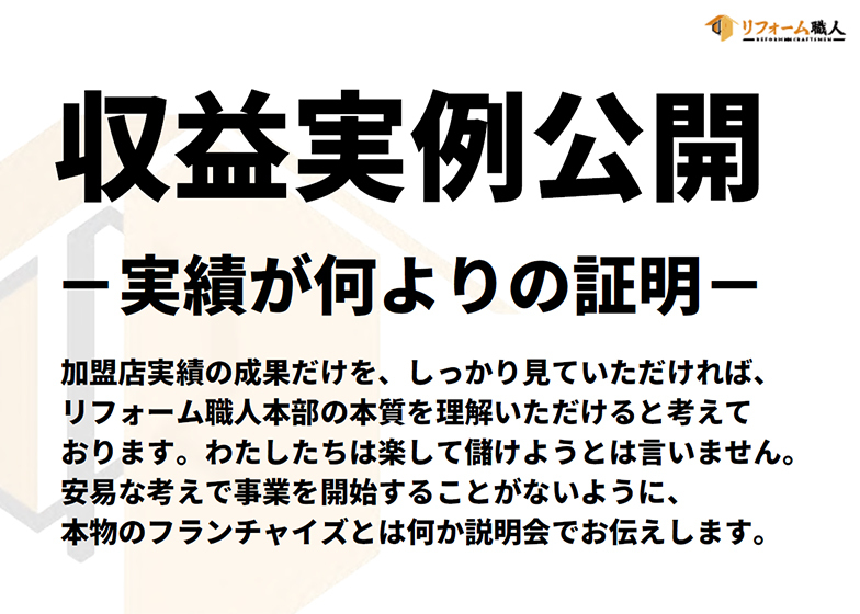 リフォーム職人株式会社のフランチャイズ開業プランフランチャイズ